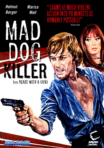 Helmut Berger was an Austrian-born actor who later found fame doing filmwork in Italy and France. He crackles with a demonic intensity in Beast with a Gun, looking for all the world like a young Kenneth Branagh crossed with a sadistic gang member from Death Wish 3. He seems to relish in his role as a “mad dog killer”: from the opening of the film when he escapes from prison, he never stops lashing out at the world. He beats the crap out of a security guard and some poor gas station attendants; he gets revenge against the man who squealed on his gang, then forces himself on the guy’s wife and takes her along for the rest of his crime spree. Meanwhile, a mustached and rather ineffectual cop tries to pinpoint Helmut’s whereabouts and bring him to justice. The film builds to its inevitable conclusion as these two opposing forces of the law must eventually meet.