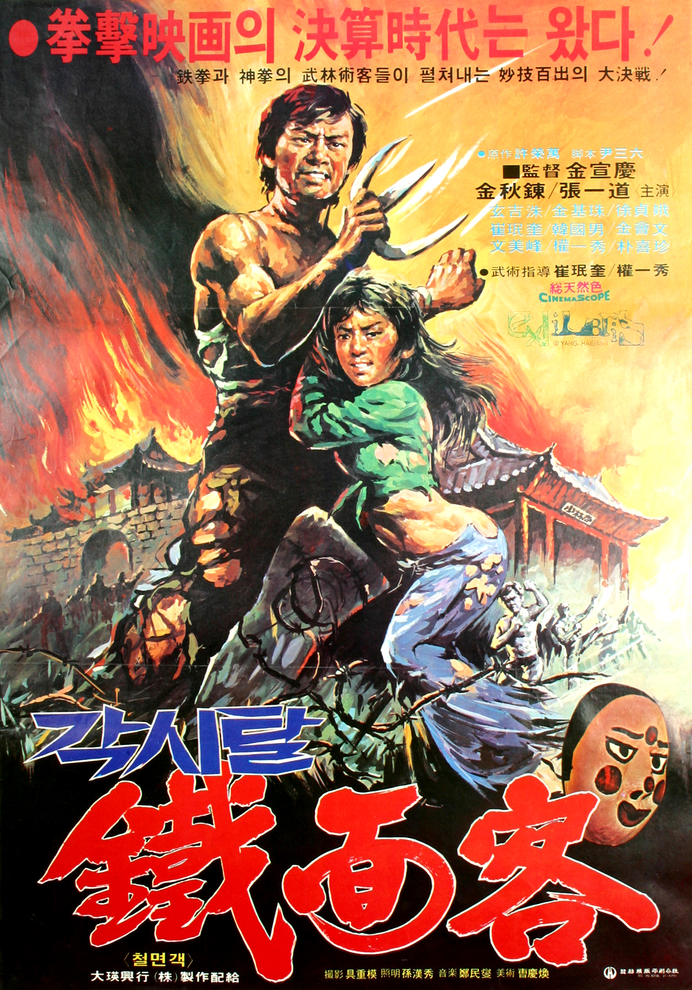 The most entertaining thing in Blood of Dragon Peril is of course the character of the Doll Bride Mask. It’s certainly one of the more unique entries in the world of kung-fu characters, and contrary to what the name suggests, it’s clear from the start that it’s not a woman. The mask also marks the movie as distinctly Korean, its white appearance with red dots marked on the cheeks and forehead making it resemble a cross between the Five Venoms meets Michael Myers from Halloween. The fact that it makes the character remain eerily expressionless during the fight scenes adds to the mysterious nature of his intentions. We never really know if he just wants to cause as much trouble for the Japanese as possible, like any good freedom fighter should, or is there something more to his agenda?